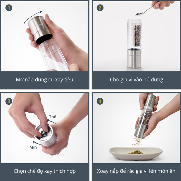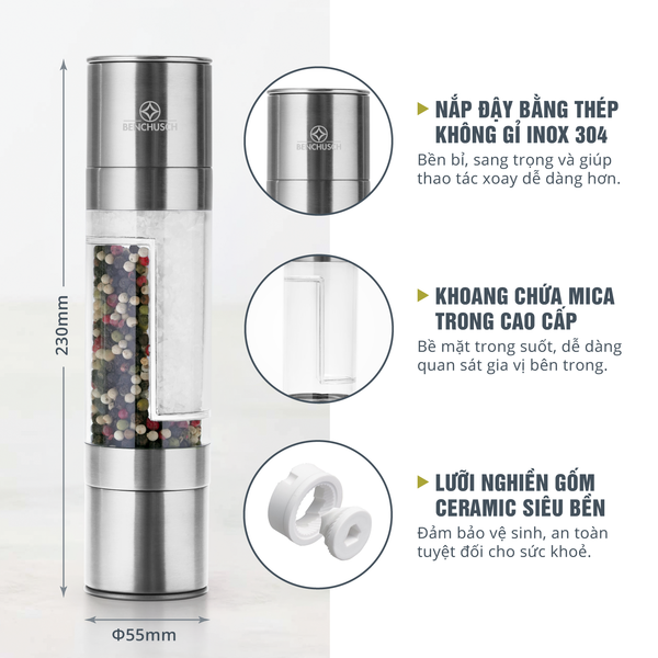 Dụng Cụ Xay Tiêu Và Muối 2 trong 1 Benchusch - Elegant